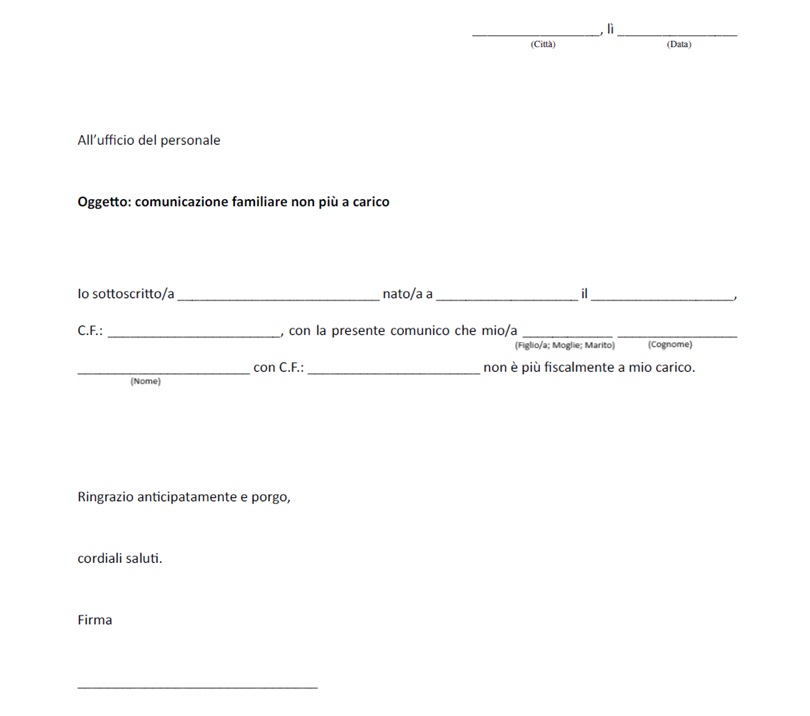Modello Comunicazione familiare NON più a caricoModelli Per comunicare che un familiare NON è più a tuo carico Modello Comunicazione familiare NON più a caricoDownload