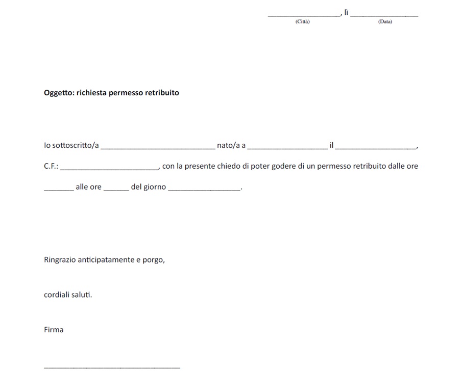 Modello Richiesta Permesso RetribuitoModelli Per richiedere ore di permesso retribuito Modulo Richiesta PermessoDownload Clicca qui per vedere e copiare la richiesta permessi retribuiti via e-mail