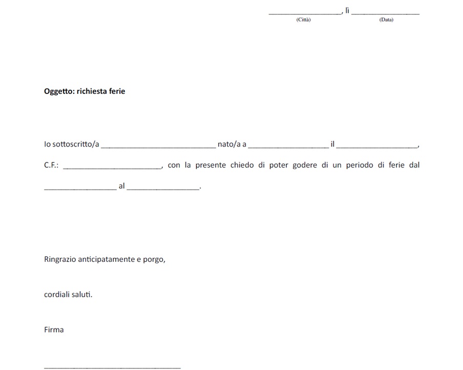 Per richiedere un periodo di ferie – modulo richiesta ferie